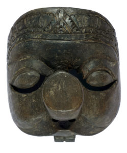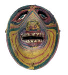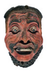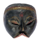 Indonesia, Giava e Bali, Cinque piccole maschere wayang-topeng. XIX - inizio XX secolo. Legno intagliato e dipinto. Altezza: cm 15/19. Larghezza: cm 13,5/15. Provenienza: baronessa Marion Barton Muzi Falconi. Marion Barton era figlia dell'ambasciatore inglese Sir Sidney Barton (Exeter, 1876 – 1946) Console Generale del Regno Unito a Shanghai fino al 1929, e moglie dell'ambasciatore italiano barone Filippo Muzi Falconi. Dopo la fine della carriera del marito si ritirò a Montemarcello dove aprì una galleria di arte orientale. I lotti di arte indonesiana che seguono provengono tutti dalla sua raccolta. Tipologia di maschera tipica del wayang-topeng, spettacolo di danza teatrale diffuso nell'Indonesia orientale e basato sulle storie di Panji , ciclo dedicato al leggendario principe di Java che portava lo stesso nome. Insieme al Rāmāyaṇa, e al Mahabharata, i racconti di Panji sono alla base dell'epica locale e del genere wayang nelle due versioni topeng (danza in maschera) e golek (burattini delle ombre). La maschera, scolpita in legno duro e dipinta nella parte anteriore, veniva indossata da un danzatore che vedeva attraverso le fessure aperte in corrispondenza degli occhi, per mezzo di un pezzo di cuoio nella parte anteriore, il ballerino teneva poi saldamente la maschera davanti al viso con i denti. I danzatori indossavano la maschera per interpretare il personaggio della storia che veniva narrata dal dalang (l'interprete della narrazione). (5)