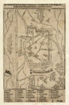Gregor Reisch [da], Typus Universalis Terrae, Iuxta Modernorum Distinctionem et Extensionem per Regna et Provincias. Strasbourg: Johannes Grüninger, 1515 [1535] / Monaco: Verlag Ludwig Rosenthal, 1920-1929. Xilografia. mm 190x290. Foglio: mm 215x343. Due riproduzioni della terza versione della carta del mondo pubblicata nell'edizione non autorizzata uscita nel 1515 della Margarita Philosophica di Gregor Reisch. Rispetto alla carta comparsa nelle edizioni del 1503 e del 1504, quella pubblicata nel 1515 risultava semplificata e posta in una cornice rettangolare allungata: oltre alla mappa del mondo con i soli quattro venti principali, tipica delle edizioni di Grüninger, alla fine del volume compariva questo nuovo Typus universalis terræ iuxta modernorum distinctionem et extensionem per regna et provincias che mostra il nord e il sud del continente americano con una Nova terræ succincta descriptio nota perché vi compaiono parti sia del nord che del sud America (senza nome tranne che per le parole "paria seu prisilia" nella parte meridionale) e senza alcuna divisione. È probabile che la nuova carta sia stata stampata separatamente per poterla allegare anche alle edizioni precedenti. SI AGGIUNGONO: Daniel Stoopendaal (1672-1726). IERUSALEM. 1702. Incisione in rame in coloritura. mm 285x386. Dalla Bibbia di Pieter e Jacob Keur, 1702. / Mappa della città di Metz (?). Xilografia. mm 260x165. (4)