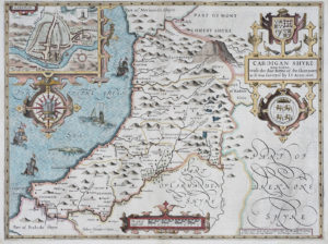 John Speed , Cardigan Shyre Described with the due forme of the Shiretown as it was furveyed by I.S. Anno 1610. John Sudbury & George Humble [1611].