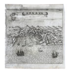 Francesco Scoto, Genova. Vicenza: 1628 ca. Incisione in rame. mm 120x180. Foglio: mm 148x205. Da Itinerario overo nova descrittione de'viaggi principali d'Italia.... Vicenza o Padova, 1628-1638. SI AGGIUNGONO: Id., Genova. Incisione in rame. mm 125x125. Foglio: mm 140x130. Venezia: Pietro Brigonci, 1665. / Pietro Bertelli. Genova. Padova: 1670. Incisione in rame. mm 165x202. Piccola pianta prospettica della città di Genova presa dal porto. Sono presenti i nomi dei monumenti più importanti. Tratta dall'edizione di Matteo Cadorin del 1670 del celebre Itinerario d'Italia di Francesco Scoto. / Alain Manesson Mallet (1630-1706), Die Stadt Genua. Frankfurt, 1719. Incisione in rame. mm 160x135. Foglio: mm 222x148. / Der schonen und weitherhimpten Statt Genua...1548. Xilografia. mm 125x155. Foglio: mm 165x200. (5)