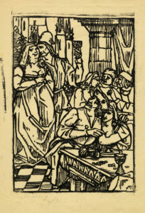 Émile Bernard, La muse de gloire.. 1912. Xilografia su carta sottile. mm 165x108. SI AGGIUNGE: 2) Senza titolo. mm 283x196. Foglio: mm 353x240. Probabile prova di stampa, come testimoniano l'inchiostro al margine sinistro e tre piccoli fori in lastra che ricalcano il disegno. Provenienza: Atelier Bernard, del quale è riportato il timbro al verso. (2)