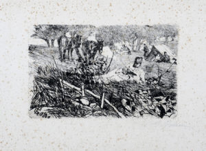 Giovanni Fattori, La lettera al campo. Acquaforte su zinco. mm 125x205. Foglio: mm 435x607. baboni-malesci, CXLIII. Firma nella lastra in basso a sinistra e controfirma a matita in basso a destra. Esemplare in tiratura coeva. (1)