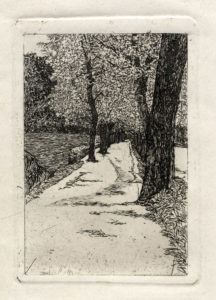 Giovanni Fattori, Le Cascine. Acquaforte su zinco. mm 168x114. Foglio: mm340x260. baboni-malesci,, XXXII. Firma in lastra in basso a sinistra.