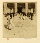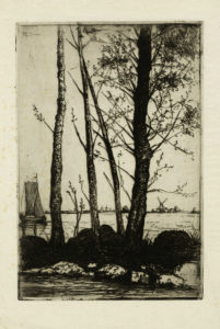 Ludovic Napoléon Lepic, Lotto composto di 2 incisioni. 1869-1909. 1) La jetée. Acquaforte. 1869. mm 160x233. Foglio: mm 240x313. Firma e data in lastra in basso a destra. 2) Arbre. Acquaforte. mm 237x160. Foglio: mm 286x200. Firma in lastra in alto a sinistra. SI AGGIUNGE: 3) Tavik Frantisek Simon, Comunicats at Madeleine. 1909. Acquaforte. mm 198x192. Foglio: mm 395x315. Firma a matita in basso a sinistra e piccolo timbro xilografico in basso a sinistra. Provenienza dei fogli: collezione Ojetti. (3)