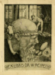 Guido Balsamo Stella, Lotto composto di 2 ex libris. 1913. 1) Ex libris W. Warncke. Acquaforte. mm 160x195. Foglio: mm 205x195. Firmata a matita in basso a destra, controfirmata e datata in lastra. L'opera è adornata da una bella remarque rossa ai margini inferiore e sinistro. 2) Ex libris Dr. W. Reipen. mm 155x110. Foglio: mm 185x135. Firmata al verso. (2)