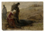 Pasquale Avallone, Dittico. 1) Cristo nell'orto. Olio su cartone. cm 24x34. Firmata in basso a destra. Al verso controfirma, titolo ed accenno di studio pittorico. 2) Le Marie al calvario. Olio su cartone. cm 24x34. Firmata in basso a destra, controfirmata e titolata al verso.