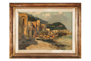 Ezelino Briante, Marina Piccola. Olio su tela. cm 50,5x70,5. Firmato in basso a sinistra. Provenienza: Galleria Masini, Firenze, la cui etichetta è applicata al verso. (1)
