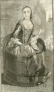 Margot la ravaudeuse. Hambourg, 1775, in-12, front., 128 p., imprimé en partie sur papier lég. azuré, demi-chagrin noir à coins, dos à nerfs richement décoré (traces d'usure, coins infér. lég. écrasés, petites rouss. claires éparses, petits manques de papier au plat arrière) (reliure signée Chipot, excellent relieur du milieu du 19e s. qui a échappé à Fléty). Fameux roman licencieux, orné dans cette édition d'un frontispice gravé représentant Margot dans son tonneau.