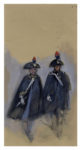 Lilia De Nobili, Lotto composto di 9 bozzetti teatrali e di 1 studio di testata per Vogue. Tempera e matita su cartoncini. mm 167/360x125/385. (10)