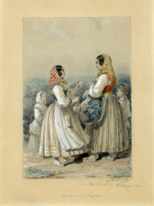 Alfred André Geniole, Souvenir de Luques. 1844. Matita e acquerello su carta applicata su cartoncino. Firmato e dedicato a matita con data 1844 in basso a destra e titolato in basso al centro. Finissimo acquerello di epoca romantica francese ritraente costumi della città di Lucca, ad opera di un artista apprezzato per i suoi temi di genere e popolari. (1)