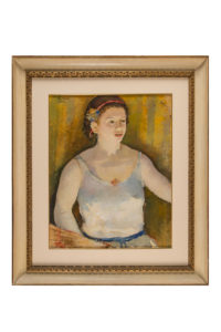 Franco Gentilini, La cantante. 1930. Olio su tela. cm 68x50. Firmato e datato in alto a sinistra. L'opera è accompagnata da autentica su fotografia da parte degli Archivi Riuniti - Laura Turco Liveri, rilasciata a Roma il 15 Novembre 2022. Provenienza: P. Laghi, Faenza; collezione privata, Faenza; collezione privata, Castel San Pietro Terme; collezione privata, Firenze. La ragazza ritratta è la giovane assistente di Maria Gentilini, sorella di Franco Gentilini, che all'epoca era sarta. (1)