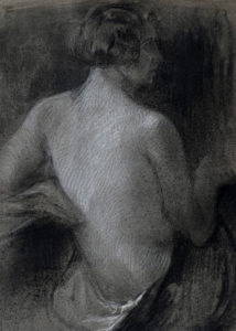 Henri Gervex, Nudo femminile di schiena. Carboncino, pastello bianco e matita su carta. mm 585x425. Al verso iscritto a pastello azzurro: "Gervex". (1)