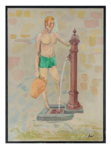 Guglielmo Janni, Alla fontanina di Roma. Olio su tela. cm 70x50. Firmato in basso a destra. Titolato e controfirmato al verso. (1)