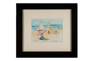 Moses Levy, Bagnanti. 1959. Acquerello su carta. mm 205x260 (visibili). Firmato in basso a destra e datato in basso a sinistra. L'opera è accompagnata dal certificato di provenienza su fotografia dell'Avv. Maurizio Pasquali di Viareggio. (1)