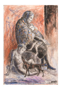 Quinto Martini, L'elemosina. Affresco su tela. cm 80x55. Firma in basso a destra e controfirma al verso. (1)