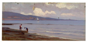 Renuccio Renucci, Costa livornese. Olio su tavoletta. cm 13,7x29,5. Firma in basso a sinistra. (1)