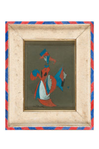 Francesco Cristofanetti, Donna futurista. Anni '30 del XX secolo. Tempera e penna e inchiostro di china su cartone scuro. cm 24,5x18 (visibili). Firmato in basso a sinistra. (1)