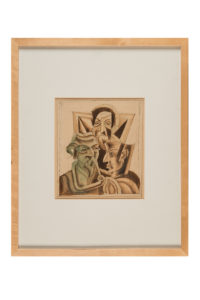 Fortunato Depero, Tre anonimi di paese. 1942-43. Matita, china e china diluita su carta. mm 235x205. L'opera è accompagnata dal certificato di autenticità del Dott. Maurizio Scudiero dell'Archivio Depero ed è stata archiviata con il codice: FD-3932-DIS. Provenienza: Collezione Carl Laszlo, Ungheria. Esposizione e bibliografia: 1) Carl Laszlo Collection, Dubniczay Palace, Veszprém, Ungheria, 2008. Riproduzione a pag. 176, n. 35. 2) Scudiero M. e Nebl M. (a cura di), Omaggio a Depero dalla sua valle, Trento, 25 settembre 2021-13 febbraio 2022. Pubblicato a pagina 98 del relativo catalogo, che si allega con l'opera.