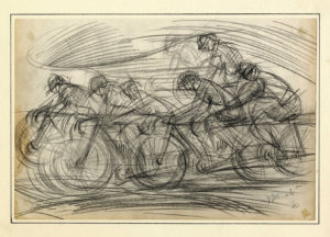 Virgilio Marchi, Corsa di bibiclette. 1920. Matita su carta. mm 207x307. Firmato e datato in basso a destra. (1)