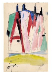 Lucio Venna Landsmann, Arma. Acquerello, penna e inchiostro di china su carta. mm 219x140. Firmato in basso a sinistra. (1)