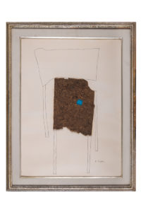 Roberto Crippa, Senza titolo. 1960-70. Penna e inchiostro di china con applicazione di sughero e cartone azzurro su carta. cm 70x50,5. Firmato in basso a destra. Opera accompagnata dal certificato di autenticità di Stefanini, Galleria Pace. All'opera è stato assegnato il numero di repertorio 1508. Al verso del supporto iscritto: "A mia moglie, Julio". (1)