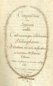 (Jean-Baptiste).- Compendium in Logicam wallii Caeterorumque Celebrium Philosophorum dictatum necnon explicatum a doctissimo D. Domino Liebart olim Professore ac decano collegii Lillii verum scriptum tritumque à me E. J. Decartier Lovanii 1809 (à la fin : « Finis Tractatus de Meta-physicâ ad usum E. Decartier Lovanii philosophi. Anno ab orbe redempto 1810 ». Manuscrit sur papier, 8°, 304 p. : pp. 1-2 : Prolegomenon in Logicam ; pp. 2-84 : Pars prima ; pp. 85-92 blanches ; 1 f. blanc ; pp. 1-70 : Pars secunda ; 1-139 : De Methaphysica ; p. 40 blanche, demi-veau brun de l'époque, dos lisse (rel. frottée, coiffes arrachées, mors avant fendu). Ex-libris moderne « Rosniansky ». Jean-Baptiste Liebaert (1757-1822) est professeur de philosophie de l'ancienne université de Louvain depuis 1782. Après la suppression de l'université, il ouvrit à Louvain un cours de philosophie particulier qui fut très utile et qu'il continua juqu'à l'érection de la nouvelle université où sa chaire lui fut rendue en 1817. Le baron de Reiffenberg le remplaça en 1822 peu de temps avant sa mort. Ce cours pris en note par un certain E. Decartier durant la période, semble-t-il, où Liebaert enseigna à Louvain la philosophie à titre « privé » est un précieux témoignage de la continuité de l'enseignement de cette discipline à Louvain.