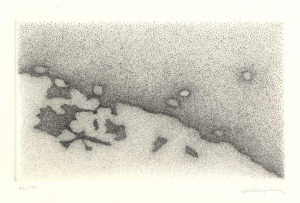 Giulia Napoleone, In apparenza d'ombra. 1999. Cartella composta di 3 incisioni a a punzone su carta Graphia della Cartiera Sicars. mm 145x245 cad. Fogli: mm 250x347 cad. Tutte le incisioni sono firmate a matita in basso a destra, numerate in basso a sinistra, riportano il timbro a secco de "Il Bulino Roma" in basso a sinistra e sono protette da velina. Es. 42/50. In apparenza d'ombra è il titolo di una poesia di Luigi Cavallo dedicato all'artista. (1)