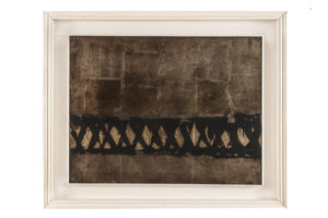 Tomonori Toyofuku, Untitled. 1962. Olio, vernice metallizzata e foglia d'oro su tela. cm 50x65. Firma e data al verso. Molto raro da trovarsi in pittura. (1)