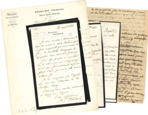A15. DIVERS. 21 lettres, la plupart L.A.S. et adresseés à l’historien Jules Luette de LA PILORGERIE (on joint qqs invitations impr.). Henri d’Orléans duc d’Aumale (plus une carte de visite signée), Odilon Barrot, Marie-Caroline duchesse de Berry, Adolphe Billault, Louis de Carné, Alfred-Auguste Cuvillier-Fleury (2), Jacques-Charles Dupont de l’Eure, Amédée de Durfort duc de Duras, Alfred de Falloux (plus 2 de Madame), Gaspard Gourgaud, Édouard marquis de La Grange, Charles Lucas, Nicolas-Charles Oudinot, Henri Patin, Claude comte de Rambuteau, Narcisse-Achille de Salvandy, Jules Simon, Louis-Mortimer Ternaux, Adolphe Thiers.