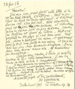 A19. Marcel GROMAIRE (1892-1971). L.A.S., 23 février 1928, à Adolphe AYNAUD à Lille ; 1 page …