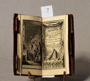 [ALMANACH]. • Souvenir a l’Angloise et Recueil de Coiffures Dedie aux Dames de bon gout […]. •• Le Secretaire des dames et des messieurs, ou Dépositaires fidèles & discrets […]. A Paris, Chez Desnos, Ingénieur - Géographe et Libraire de Sa Majeste Danoise, s. d. [1780]. 2 parties en un volume in-16, maroquin rouge, triple filet doré encadrant les plats, dos lisse orné, tranches dorées, fermoirs à crayon (reliure de l’époque). Un frontispice, un titre orné et douze portraits gravés. Coins émoussés.