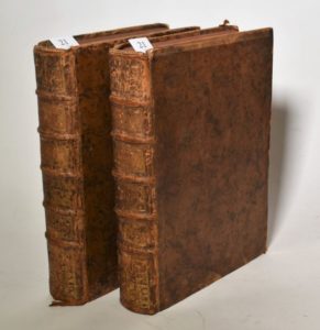 [ARCHITECTURE]. JOMBERT (Charles Antoine). Architecture moderne, ou l’Art de bien bâtir pour toutes sortes de personnes. A Paris, Chez l’Auteur, Libraire du Génie & de l’Artillerie, 1764. 2 volumes in-4°, veau, dos à nerfs orné, pièces de titre et de tomaison en maroquin (reliure de l’époque). Deux titres-frontispices, vignettes par MARVYE & COCHIN et 151 planches gravées, la plupart sur double page, certaines repliées. Ex-libris manuscrit. Coiffes accidentées et coins émoussés ; un mors fendu sur 4 cm sur le second volume.