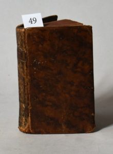 CRAMEZEL (Pierre Augustin de). Ethologie ou Le Coeur de l’homme. A Rennes, Chez Julien Vatar, père, & Chez Jul. Ch. Vatar, fils, 1755. In-16, basane, dos lisse orné (reliure de l’époque). ÉDITION ORIGINALE. De la bibliothèque Dusaul avec ex-libris manuscrit en page de garde. Petits accidents aux mors ; petites déchirures sur deux feuillets (213/214 et 215/216) avec petite perte de texte sur le second.