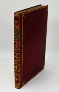 DELILLE (Jacques). Les Jardins, ou l’Art d’embellir les paysages. Poème. A Paris, Chez Valade, Imprimeur, Libraire, Chez Cazin, Libraire, et à Rheims, 1782. In-8°, maroquin rouge, triple filet doré encadrant les plats, petit fleuron aux angles, dos à nerfs orné, tranches dorées (reliure de l’époque). « 2e Edition. » Un titre orné d’une vignette gravée par LAURENT et une planche d’après COCHIN. BON EXEMPLAIRE en MAROQUIN ROUGE de l’ÉPOQUE.