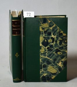 [IMBERT (Guillaume)]. La Chronique scandaleuse ou Mémoires pour servir à l’histoire de la génération présente. A Paris, Dans un coin d’où l’on voit tout, 1785. 2 volumes in-12, bradel, demi-percaline verte à coins, non rogné (Champs-Stroobants Sr). « Nouvelle édition, considérablement augmentée & renfermant les anecdotes les plus piquantes que l’histoire secrete des Sociétés a offertes jusqu’au Ier Janvier 1785. » Des bibliothèques de Mellet et du Comte de Marcillac, avec ex-libris manuscrits sur les titres et les premières pages. Tache sur le titre et les 25 premiers feuillets du tome II. 2 premiers vol. seuls.