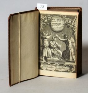 [JUSTINUS]. Justinus Cum notis selectissimis variorum, Berneggeri, Bongarsy, Vossy, Thysy, &c. Amstelodami, Apud Ludovicum et Danielem Elzevirios, 1659. In-12 (110 x 177 mm), chagrin rouge, double filet doré encadrant les plats, dos à nerfs orné, tranches dorées (reliure mi-XIXe s.). « Editio accuratissima. » Un titre-frontispice allégorique gravé. Un coin de tête émoussé. Willems, 1248 ; Brunet, III, 621.