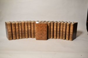 La HARPE (Jean-François de). Abrégé de l’Histoire générale des Voyages. A Paris, Hôtel de Thou, 1780. 21 volumes in-8°, veau, dos à nerfs orné (reliure de l’époque). 79 planches gravées (sur 82), certaines repliées. Ex-libris manuscrit en pages de garde. Accidents aux reliures ; quelques rousseurs ; un feuillet émargé (t. I) ; mouillures (t. III).