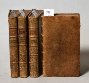 Le SAGE (Alain René). Histoire de Gil Blas de Santillane. A Paris, Par les Libraires Associés, 1747. 4 volumes in-12, veau brun, dos à nerfs orné (rel. de l’ép). « Dernière Edition revue, & corrigée. » 32 planches. Ex-libris. Petits accidents aux coiffes.