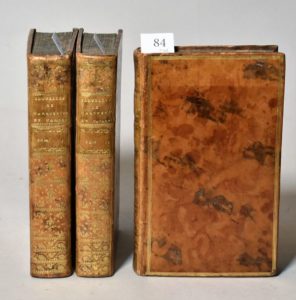[MARGUERITE de NAVARRE]. Les Nouvelles de Marguerite, reine de Navarre. Berne, Chez la Nouvelle Société Typographique, 1780-1781. 3 volumes in-8°, veau, triple filet doré encadrant les plats, dos lisse orné (rel. de l’époque). Édition de l’Heptameron des nouvelles, partagée avec le Bernois Béat Ludwig Walthard. Un titre-frontispice (répété trois fois), 72 vignettes et 72 culs-de-lampe par Balthasar Antoine DUNKER & 73 planches gravées par Joseph de LONGUEIL & alii d’après Sigmund FREUDENBERG. Légères décharges. « Figures […] très jolies et gravées avec une finesse remarquable » (Cohen, 680-681).