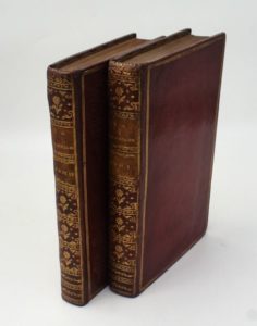 [VOLTAIRE]. La Henriade. A Paris, Chez la Veuve Duchesne, Saillant, Desaint, Panckoucke & Nyon, Libraires, s. d. [1769] & 1770. 2 volumes petit in-8°, maroquin rouge, triple filet doré encadrant les plats, dos lisse orné, tranches dorées (reliure de l’époque). « Nouvelle édition. » Un frontispice, un titre orné du portrait de l’auteur, dix planches et dix vignettes gravés par Charles EISEN. Quelques légères rousseurs, mais BEL EXEMPLAIRE en MAROQUIN ROUGE de l’ÉPOQUE.