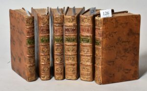 [VOYAGES]. AUTEROCHE (Jean Chapp e d’). • Voyage en Sibérie, fait par ordre du roi en 1761 ; contenant Les Moeurs, les Usages des Russes, & l’Etat actuel de cette Puissance ; &c. (2 vol.) •• KRACHENINNIKOW (Stepan Petrovitch). Histoire et Description du Kamtchatka […]. (2 vol.) ••• [CATHERINE II]. Antidote, ou Examen du mauvais livre superbement imprimé intitulé : ‘‘Voyage en Sibérie fait par ordre du roi en 1761 […]’’. (2 vol.). A Amsterdam, Chez Marc Michel Rey, 1769-1772. Ensemble 6 volumes in-12, veau, dos à nerfs orné (reliure de l’époque). Seconde édition. Les tomes V et VI contiennent l’édition originale de la riposte de Catherine II impératrice de Russie. Un frontispice replié, onze planches dont six repliées, cinq tableaux repliés et une grande « carte détaillée de cette contrée jusqu’ici presque inconnue ». Le tout gravé par B. de BAKKER. Ex-libris caviardé sur les contre-plats. Carrère d’Encausse L’Impératrice et l’abbé. Un duel littéraire inédit entre Catherine II et l’abbé Chappe d’Auteroche Paris, Fayard, 2003.