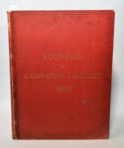 [COLONIES]. SCELLIER de GISORS (Louis Henri Georges), dir. Exposition universelle de 1900. Section des colonies et pays de protectorat. Album commémoratif. Paris, A. Chevron, s. d. [1900]. In-plano, demi-chagrin rouge, inscription « Souvenirs de l’exposition coloniale / 1900 » au centre du premier plat, dos lisse orné (reliure de l’éditeur). 97 planches, certaines doubles, numérotées de 3 à 99. Quelques accidents à la reliure ; légères rousseurs sur quelques planches.