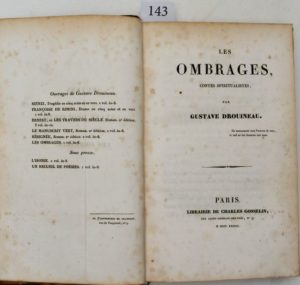 DROUINEAU (Gustave). Les Ombrages, contes spiritualistes. Paris, Librairie de Charles Gosselin, …