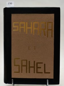 FROMENTIN (Eugène). Sahara et Sahel […]. Paris, E. Plon, Nourrit et Cie, Imprimeurs-Éditeurs, 1887. In-4°, chagrin vert sombre, large décor personnalisé et doré au centre des plats, titre doré sur le premier, dos lisse, tête dorée, couverture illustrée conservée, étui (M. F. Jordan). Douze eaux-fortes par Le RAT, COURTRY et RAJON, une héliogravure par le procédé GOUPIL et quatre gravures en relief d’après Eugène FROMENTIN. Ex-libris manuscrit au v° du frontispice. Couverture accidentée et renforcée ; très légères rousseurs sur quelques illustrations.