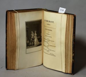 [GRESSET (Jean-Baptiste Louis)]. OEuvres choisies de Gresset précédées d’Un Essai sur sa vie et ses écrits par M. Campenon de l’Académie Françoise. Paris, Janet et Cotelle, Libraires, 1823. In-8°, maroquin bleu nuit à coins, filets dorés bordant les plats, dos à nerfs orné, tête dorée, partiellement non rogné (David). Un portrait de l’auteur en frontispice, gravé par Jean Marc NATTIER, et un grand nombre de planches, certaines en deux états, par Barthélemy ROGER, MOREAU le jeune, Adèle BAQUOY, Nicolas de LAUNAY, Charles EISEN, etc. UN DES 60 EXEMPLAIRES DE TÊTE sur GRAND VÉLIN, celui-ci (non numéroté) contenant une suite supplémentaire des illustrations avant la lettre. Des bibliothèques Eugène Paillet et d’Alfred Piet, avec ex-libris. Petit accident à la coiffe de tête et aux coins ; quelques rousseurs.