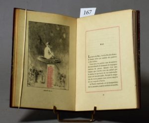 Le ROUX (Hugues). 1892. Calendrier Parisien. Paris, Librairie L. Conquet, 1892. In-12, bradel, demi-maroquin rouge à coins, couverture illustrée conservée (E. Carayon). Treize lithographies, dont un frontispice, par DILLON. Tiré à 300 exemplaires, celui-ci (n° 15), UN DES 100 DE TÊTE SUR JAPON contenant une suite supplémentaire des lithographies tirée sur chine.