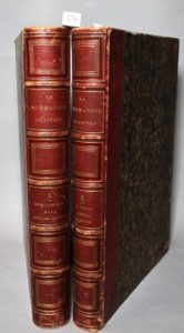 [NORMANDIE]. BENOIST (Félix) & LALAISSE (Hippolyte). La Normandie illustrée. Monuments, sites et costumes de la Seine-Inférieure, de l’Eure, du Calvados, de l’Orne et de la Manche, dessinés d’après nature […]. À Nantes, par Charpentier, Père, Fils & Cie, ImprimeursÉditeurs, 1852. 2 volumes grand in-folio, demi-chagrin rouge à coins, dos à nerfs orné de caissons dorés, tête dorée (reliure de l’époque). • Premier volume : Seine-Inférieure, Eure et costumes normands. •• Deuxième volume : Calvados, Orne et Manche. Cinq titres-frontispices, une carte et 150 planches lithographiées par Félix BENOIST & Hippolyte LALAISSE, dont 24 de costumes. Coins émoussés ; coiffes, nerfs et mors frottés ; quelques rousseurs.