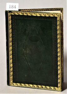[RELIURE en MAROQUIN ORNÉ]. Soscrizione gratuita de’ divoti della SS. Vergine che si venera nella parrocchia de’ Sette Dolori per cura del Reverendo Parrocho D. Gennaro Roverso. Napoli, Presso Ferdinando Raimondi, 1837. In-12 carré, maroquin vert, filet et fine roulette dentelée dorés encadrant des plats entièrement ornés d’un décor à froid, dos lisse orné (reliure italienne de l’époque). 7 pp., la dernière servant de tableau à remplir et contenant un complément manuscrit pour l’année 1838. Déchirure sans manque sur une première garde.