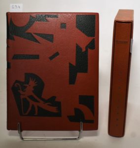 ARISTOPHANE. Les Oiseaux. Paris, Marcel Seheur, Éditeur, s. d. [1928]. In-4°, maroquin vert sombre, large décor personnalisé en maroquin rouge, dos lisse, couverture illustrée en couleurs conservée, chemise à rabats en demi-maroquin rouge, étui (M. F. Jordan). Tiré à 900 exemplaires, celui-ci n° 570. Illustrations de Lucien BOUCHER.