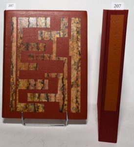 CALDWELL (Erskine). La Route au tabac. Traduction de Maurice E. Coindreau. S. l., Editions du Pré Aux Clercs, n. d. [Paris, 1945-1946]. In-4°, maroquin rouge, décor personnalisé sur les plats, dos lisse, couverture illustrée conservée, boite-étui en toile rouge avec pièce de titre en maroquin havane sur le dos (reliure fin XXe s.). Onze cuivres par Denyse de BRAVURA. Tiré à 900 exemplaires numérotés et quelques hors-commerce, celui-ci (n° 123), un des 400 sur rives.